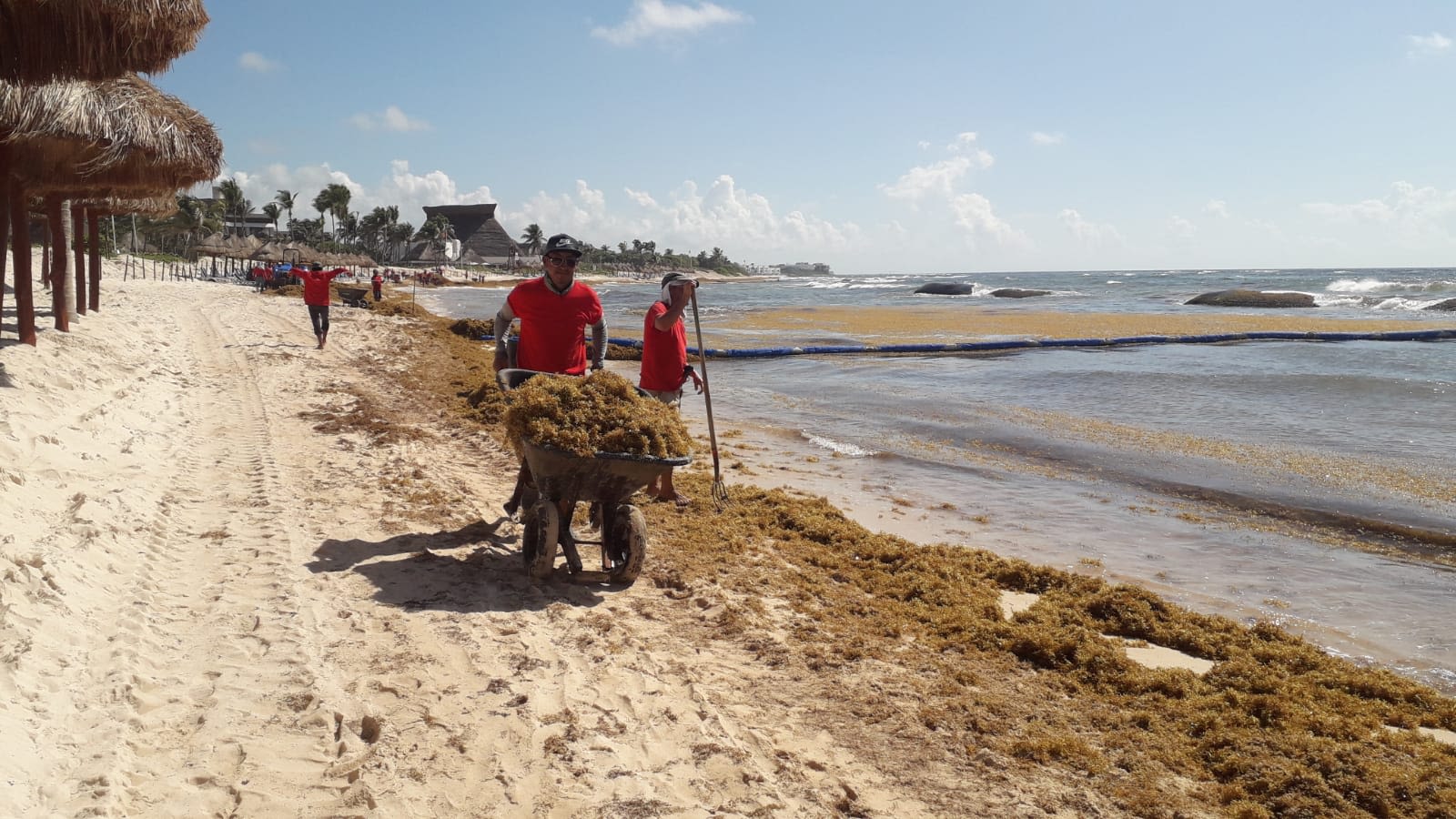 Des équipes collectent des sargasses sur la plage de Cancún, Quintana Roo. Photo : Evylin Online