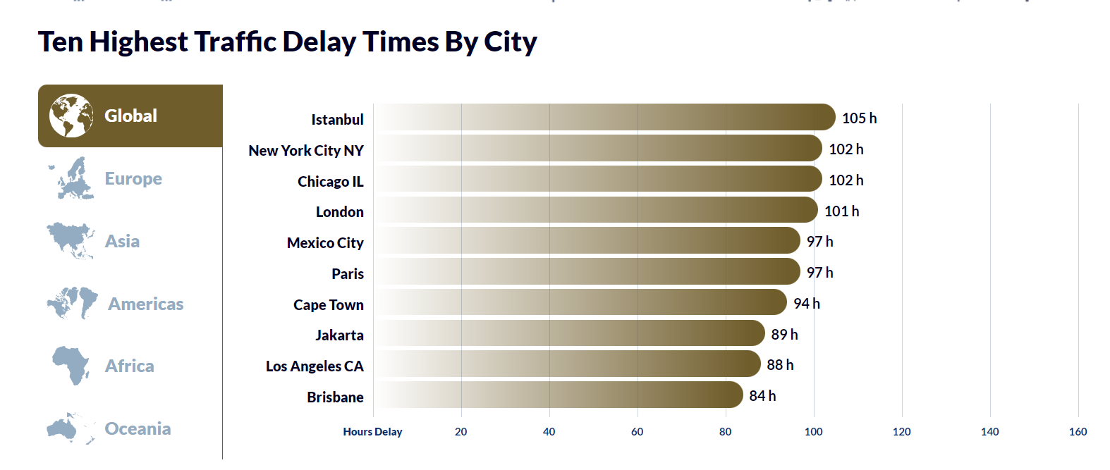 Classement des villes avec le plus de retards liés au trafic routier. Photo : Capture d’écran d’un graphique produit par la société INRIX