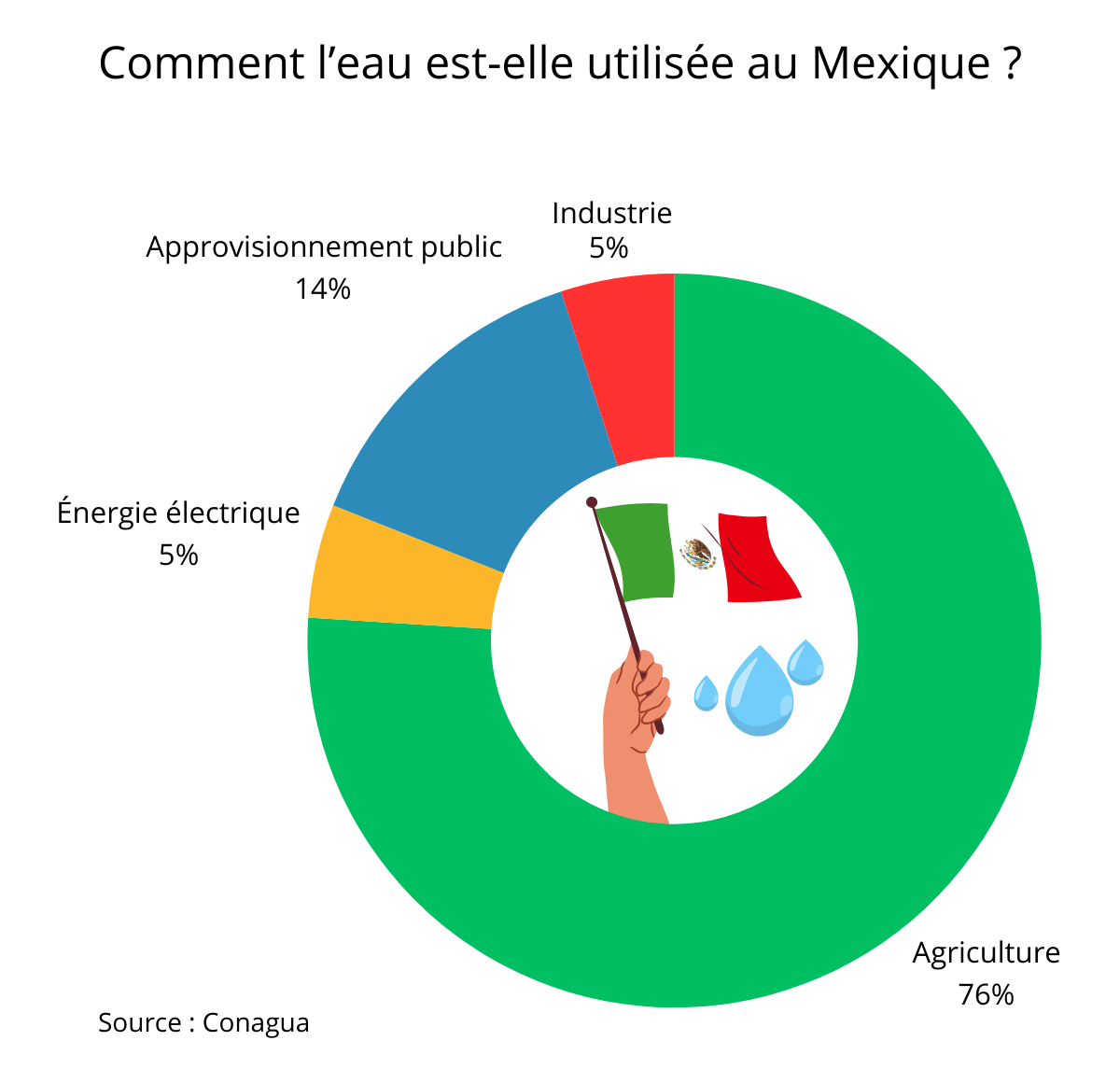 Au Mexique, depuis 1917, les ressources en eau sont une propriété de la Nation. Leur gestion est assurée par la Commission nationale de l’eau (Conagua), rattachée au Secrétariat de l’environnement et des ressources naturelles. L’organisme fédéral quantifie les ressources hydriques disponibles dans les nappes phréatiques. Et selon la loi, à partir du moment où il y a de la disponibilité dans les nappes phréatiques, la Conagua concède les ressources à des sociétés d’exploitation.
