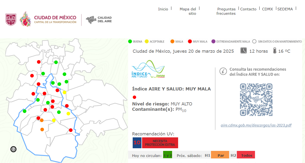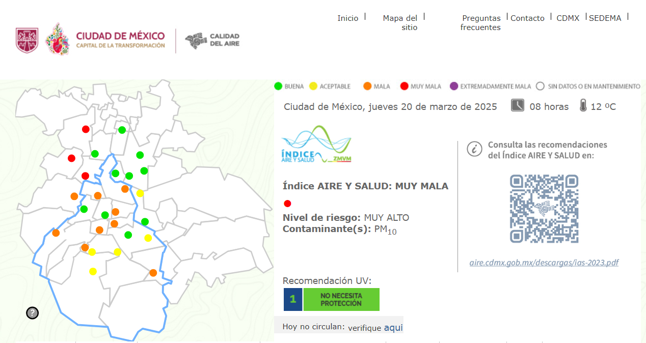 L’indice de l’air à 12h à Mexico, le 20 mars 2025. Photo : Capture d’écran Ciudad de México